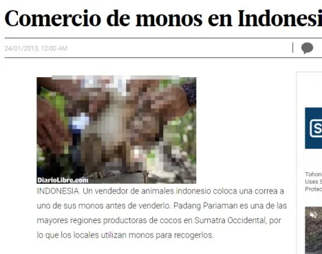 โป๊ะแตก! สื่อต่างชาติก็อปภาพมั่ว โยงไทยใช้ลิงเยี่ยงทาส