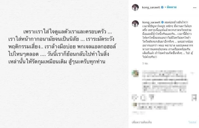 หมอก้อง ได้โพสต์บนอินสตาแกรม เผยหากโควิดกลับมาอีกครั้ง ถ้าโชคร้ายเกิดขึ้นจริงๆต้องสู้ไปด้วยกัน