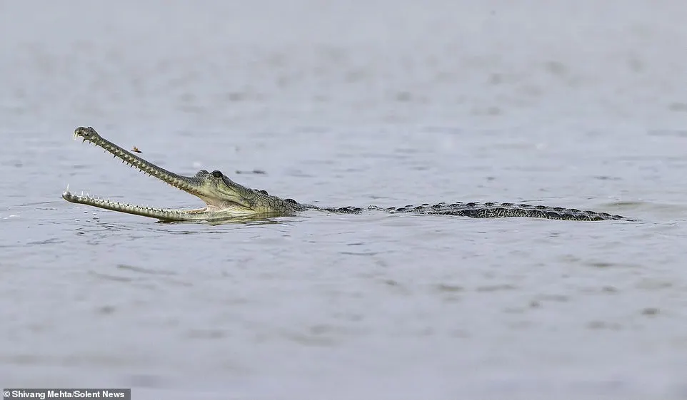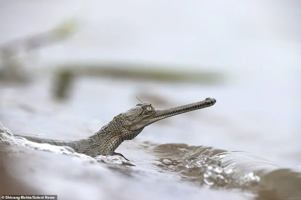 จากภาพถ่ายจะเห็นได้ว่า ลูกตะโขงอินเดียอายุ 20 วัน จำนวนหลายร้อยตัว กำลังนอนเรียงรายริมฝั่งแม่น้ำ ก่อนที่จะค่อยๆกระโดดลงไปลอยคอในแม่น้ำกันอย่างสนุกสนาน ทั้งนี้ ตะโขงอินเดีย มีความยาวเต็มที่ได้ 6.5 เมตร มีพฤติกรรมอาศัยอยู่รวมกันเป็นฝูงในแหล่งน้ำที่มีกระแสน้ำไหลเชี่ยวและลึก หรือบริเวณลำห้วยที่ติดกับแม่น้ำ ชอบนอนพึ่งแดดโดยเฉพาะในช่วงฤดูหนาว หากินปลาในน้ำ วางไข่โดยขุดโพรงตามริมฝั่งแม่น้ำ