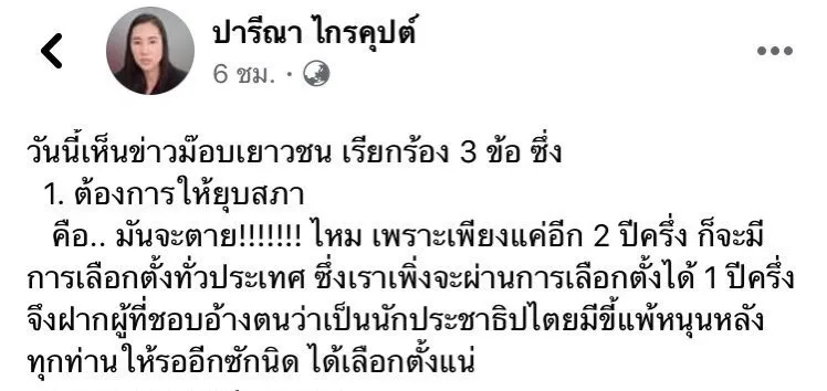 ปารีณาจึงขอเรียกร้องให้ม๊อบกลุ่มนี้
