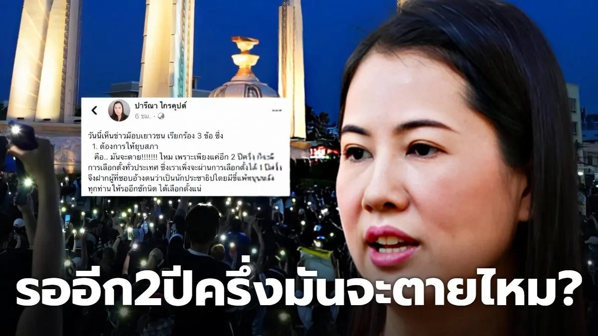 รออีก2ปีครึ่งมันจะตายไหม? "ปารีณา"สวนม็อบเยาวชนเรียกร้องยุบสภา