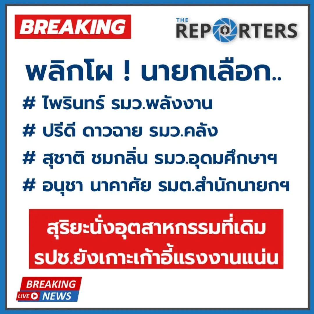 BREAKING: พลิกโผ! นายกรัฐมนตรี เลือก