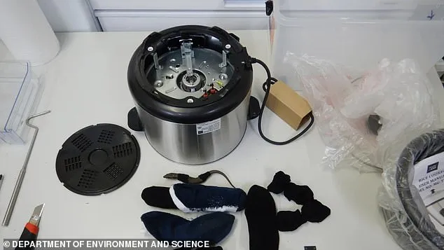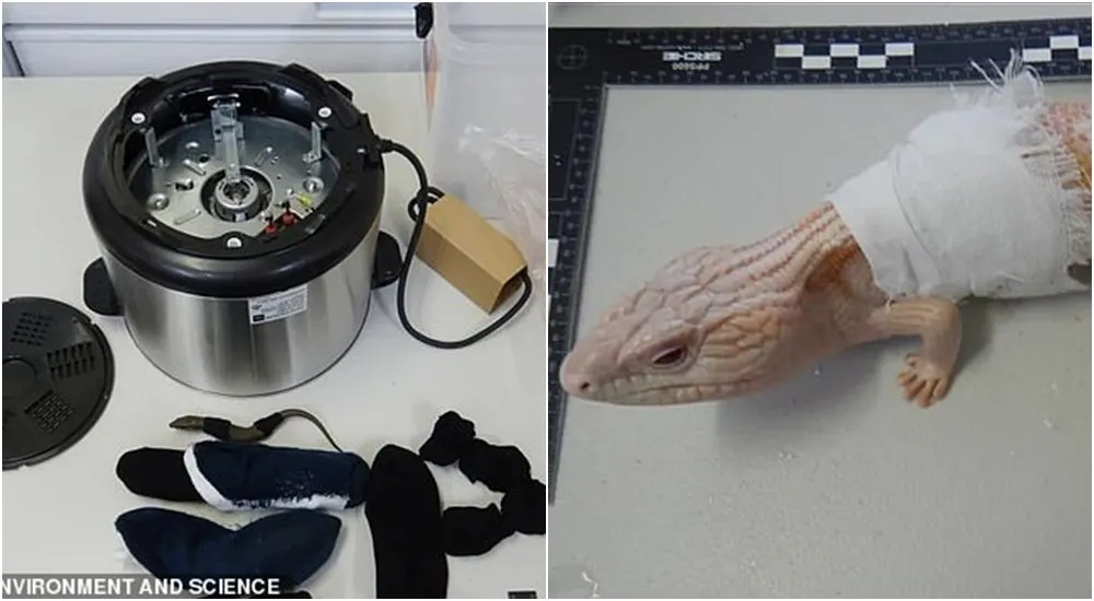 ดังนั้นเจ้าหน้าที่จึงได้ทำการตรวจสอบและรื้อหม้อหุงข้าว ก็พบว่ามีสัตว์เลื้อยคลานถูกบรรจุอยู่ภายใน ซึ่งหากนำไปขายในตลาดมืดนานาชาติจะมีมูลค่านับพันดอลลาร์ โดยสัตว์เลื้อยคลานถูกบรรจุไว้ในถุงเท้า และห่อด้วยผ้า และมีการมัดขาของสัตว์เพื่อป้องกันไม่ให้เคลื่อนไหวอีกด้วย