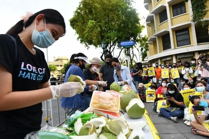 แรงไม่เลิก ม๊อบปลดแอกจัดงานกินส้มโอ ไม่วายโดนด่าอีก