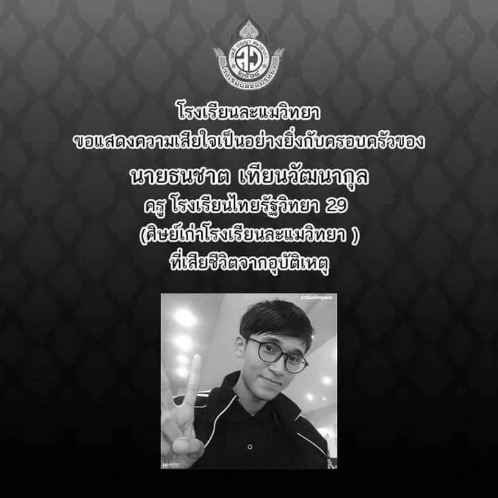 โรงเรียนละแมวิทยา ขอแสดงความเสียใจกับครอบครัวของ นายธนชาต เทียนวัฒนากุล ครู โรงเรียนไทยรัฐวิทยา 29