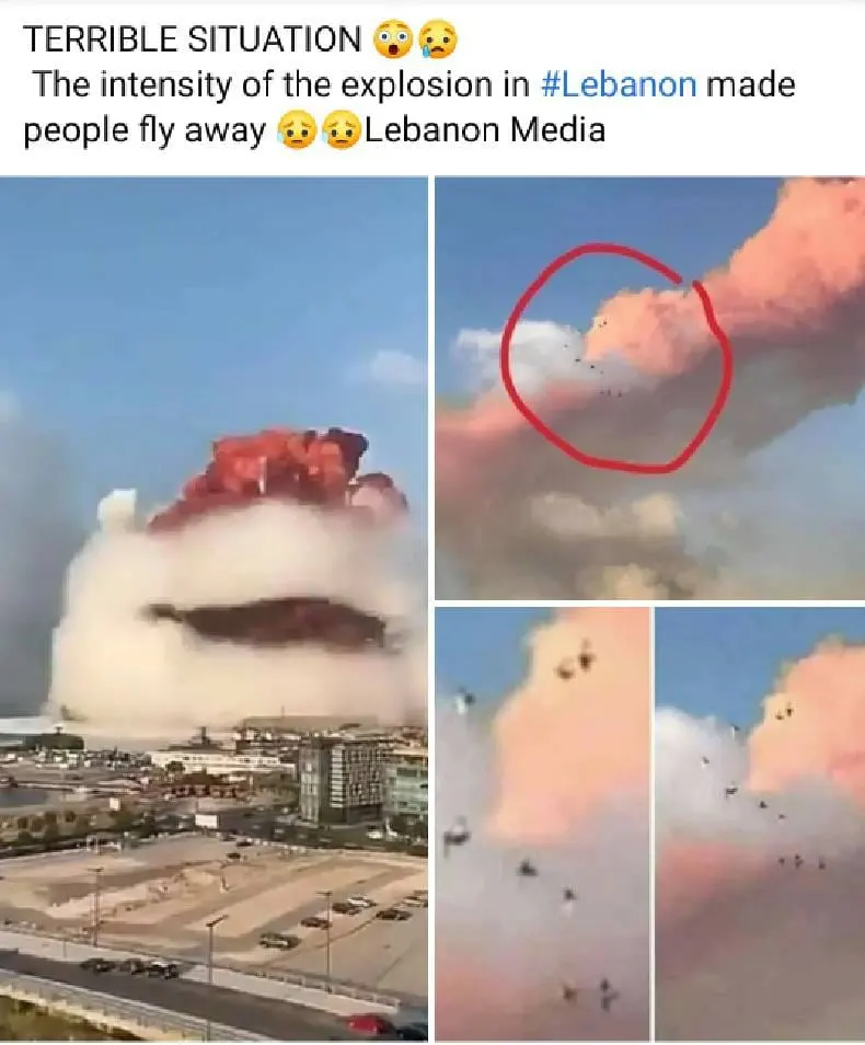 18+ สื่อของเลบานอนแสดงภาพของการระเบิดที่โหดร้าย อ้างว่าคือภาพร่างของมนุษย์ที่โดนแรงระเบิดอัดฉีกร่าง จนกระเด็นลอยเคว้งไปบนอากาศ ก่อนที่ร่างจะล่วงหล่นลงสู่พื้นดิน ซึ่งเป็นภาพสุดสะเทือนใจเป็นอย่างมาก