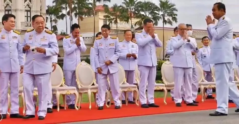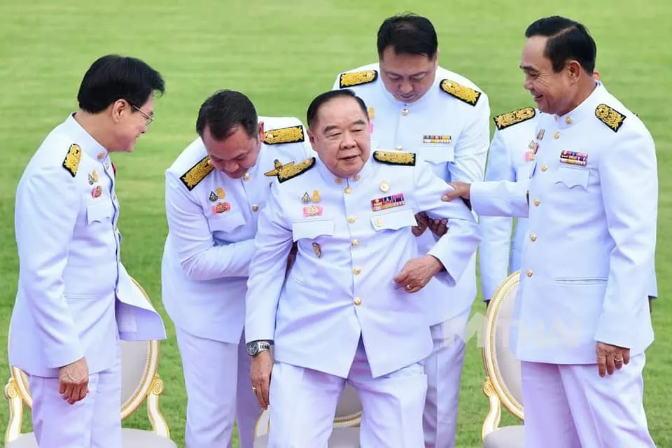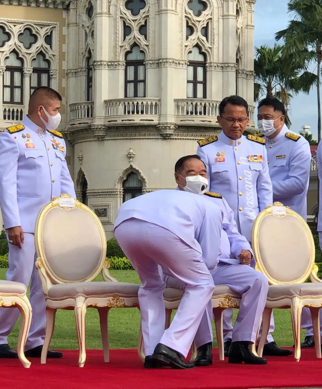 “น้องตู่” ช่วยพยุง “พี่ป้อม” ลุกขึ้นจากเก้าอี้ ถ่ายภาพหมู่ ครม.ประยุทธ์2/2 ....เช้านี้