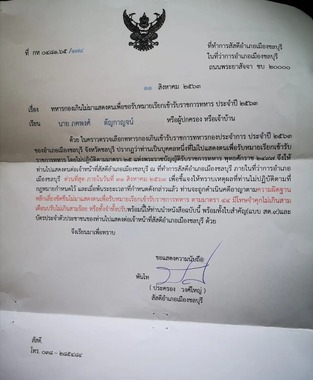 โฆษกทบ. ขอโทษแล้ว ส่งจดหมายเรียกเกณฑ์ทหารน้องเมย กระทบความรู้สึกครอบครัว รับระบบทะเบียนทหาร ยังไม่เชื่อมทะเบียนราษฎร์