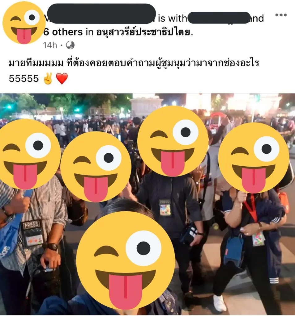 เพื่อนนี่โดนสำนักข่าวขอสัม บอกว่ามาจาก News tv ช่อง 18 สรุปไปเห็นตัวเองในช่อง Nation อีเ...้ยยย ละตัดตอนออกมาเหี้ยมาก มีการพูดเกริ่นให้ด้วยว่าหนีพ่อแม่มาชุมนุม กล้าเรียกตัวเองว่าสำนักข่าวได้ไง ถ้าจะขี้ขลาดไม่กล้าบอกว่าตัวเองเป็นใคร จรรยาบรรสื่อ อีเวน #ประชาชนปลดแอก