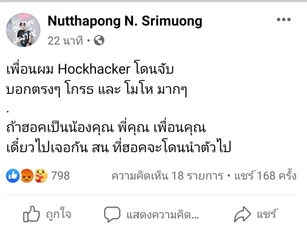ฮอคกี้ เดชาธร บำรุงเมือง ถูกจับในขณะที่อยู่กับภรรยาและลูกเมื่อเช้านี้ เขาเป็นเพียงศิลปิน ไม่ใช่อาชญากร!!! ศิลปินมีสิทธิที่จะวิพากษ์วิจารณ์สังคมและการเมืองผ่านบทเพลง ประเทศที่เจริญแล้วเค้าไม่มาไล่จับศิลปินแบบนี้#หยุดคุกคามศิลปิน#หยุดคุมคามประชาชน pic.twitter.com/23wY3uHA8b