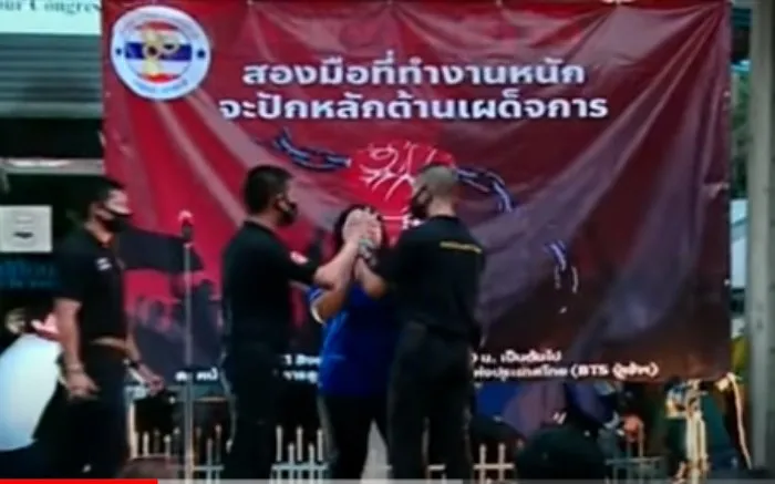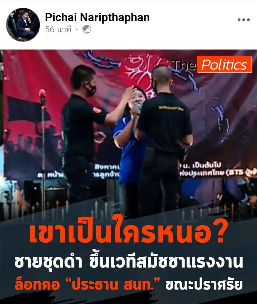 ผิดคิวไม่ได้นัดกัน ชายชุดดำบุกเวทีสมัชชาแรงงาน ฉุดประธาน สหภาพฯ ระหว่างปราศรัย