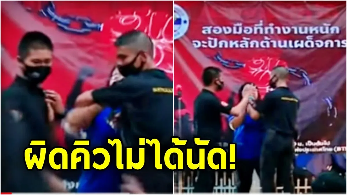 ที่แท้เป้นการ์ดของเจ้าของงานจ้างมาเข้ามาห้าม หากมีการปราศรัยพาดพิง หรือไม่เหมาะ แต่กลับเป็นขึ้นไปผิดคิว เพราะสื่อสารกันเข้าใจผิด จนวุ่นวายดังกล่าว
