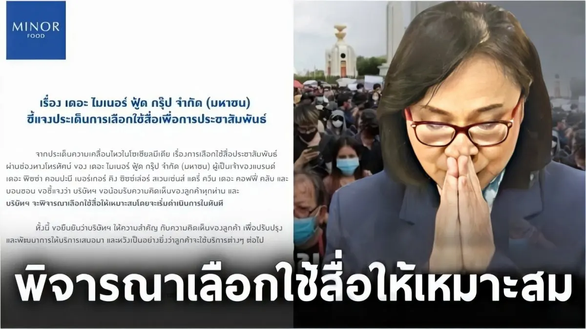 ความเคลื่อนไหวของ Minor food แจงยังไม่ถอน ขอคิดก่อน หลังผลกระทบ #แบนสปอนเซอร์เนชั่น