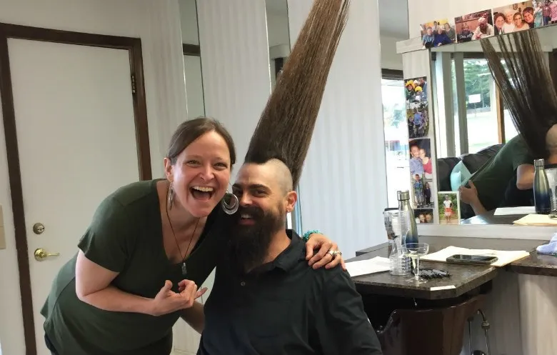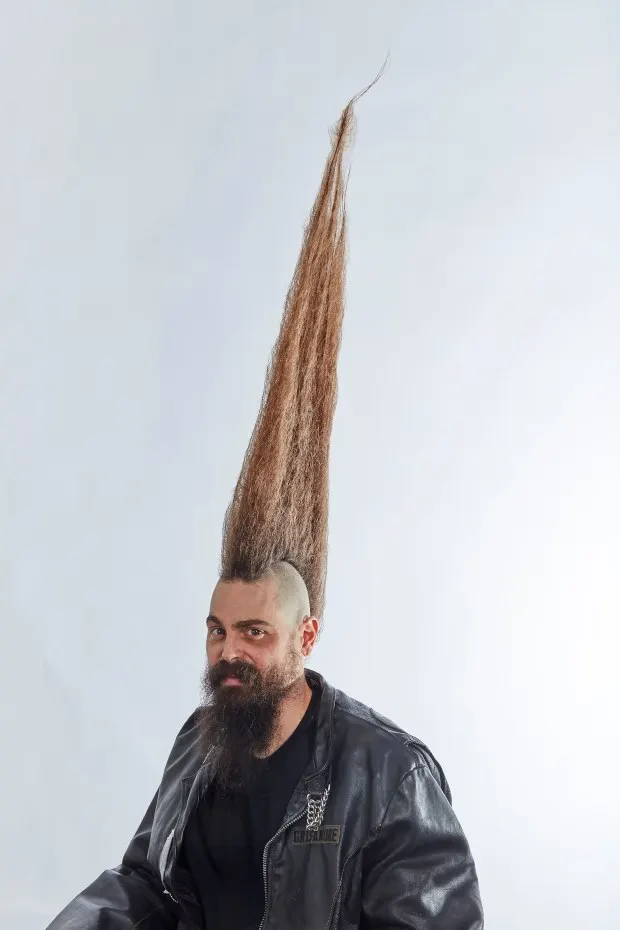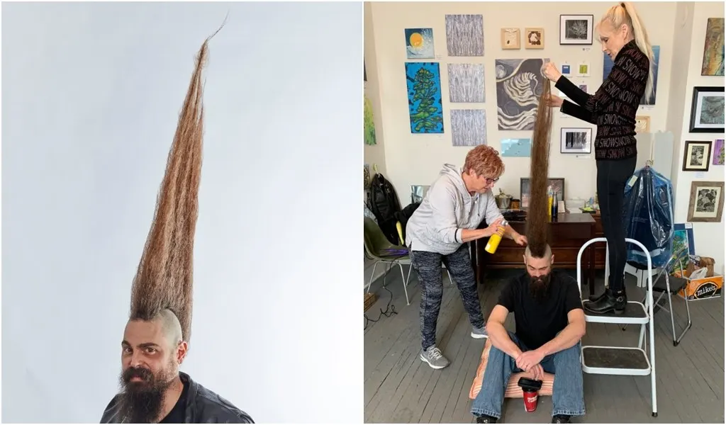 ชายคนนี้ได้รับสถิติโลกจากกินเนสส์ สำหรับผู้มีผมทรง Mohican สูงที่สุดในโลก ถึง 108.2 ซม.