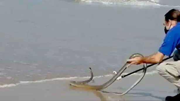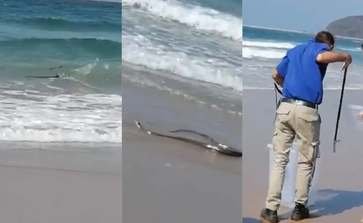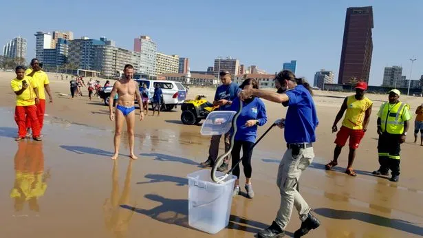 ด้าน "Craig Smith และ Lesley Labuschagne นักธรรมชาติวิทยา SAAMBR ได้รีบเดินทางไปยังชายหาดเดอร์บันในทันที หลังจากที่มีการร้องขอความช่วยเหลือ ที่นั่นพวกเขาพบกับงูแบล็กแมมบา ที่มีความยาว 2.47 เมตร บนชายหาด และคาดว่างูตัวนี้น่าจะลอยมาตามลำคลอง และแม่น้ำที่ไหลเข้าสู่ท่าเรือ ก่อนจะถูกคลื่นซัดมาตามชายหาดดังที่ปรากฏ ซึ่งในขณะที่พบงูก็ค่อนข้างอ่อนแรง และมันถูกจับส่งให้อยู่ในความดูแลของ Ushaka Sea World จนกว่าจะฟื้นคืนความแข็งแรง ก่อนจะปล่อยกลับสู่ถิ่นที่อยู่ที่เหมาะสมต่อไป