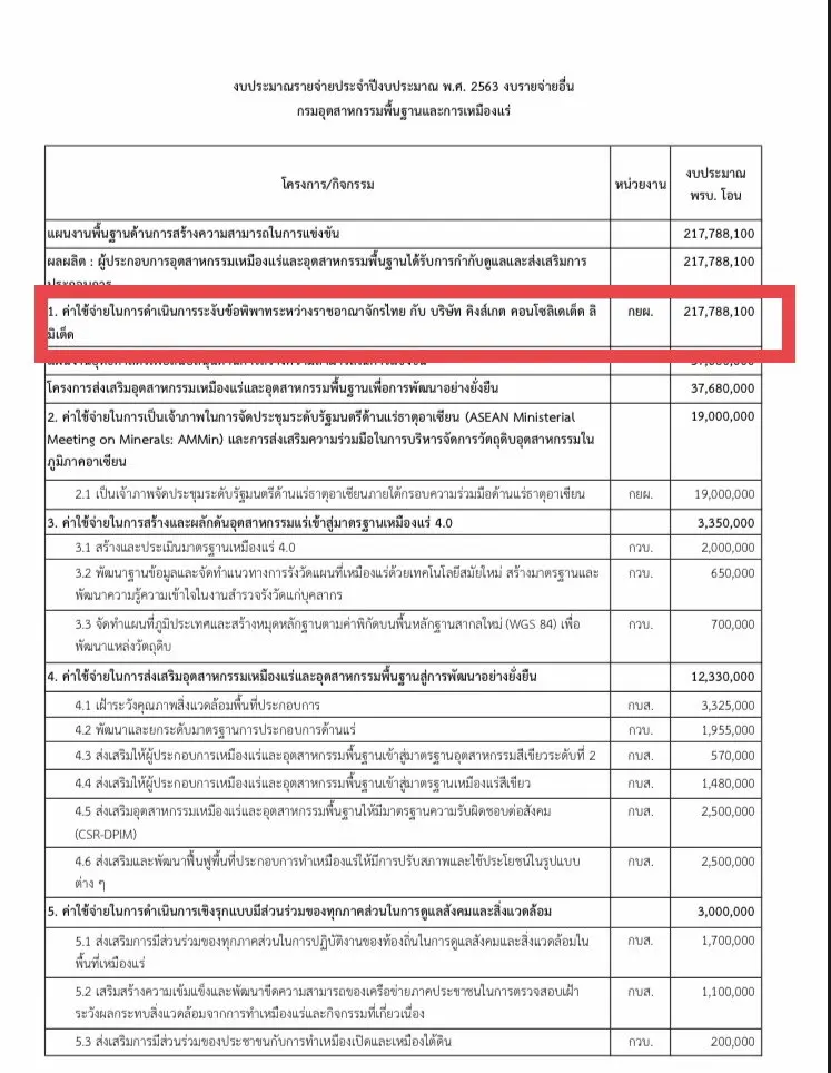 เอกสารตั้งงบสู้คดีเหมืองทองอัคราโผล่ เผยใช้งบรวมหลายร้อยล้าน หากแพ้ต้องจ่าย ‘ค่าโง่เหมืองทอง’ อีก 3 หมื่นล้านบาท