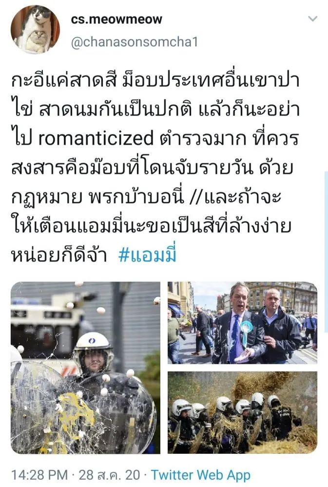 ปฏิเสธไม่ได้ ตำรวจเดือดร้อนแน่ๆ แต่มุมนึงผู้ประท้วงก็เดือดร้อนจากการปฏิบัติหน้าที่จากการไร้สามัญสำนึก ทำตามคำสั่งนายโดยไม่สนผู้ชุมนุมจะเดือดร้อนแค่ไหนเหมือนกัน#แอมมี่#รัฐบาลเฮงซวย pic.twitter.com/YEc7z3iXFN