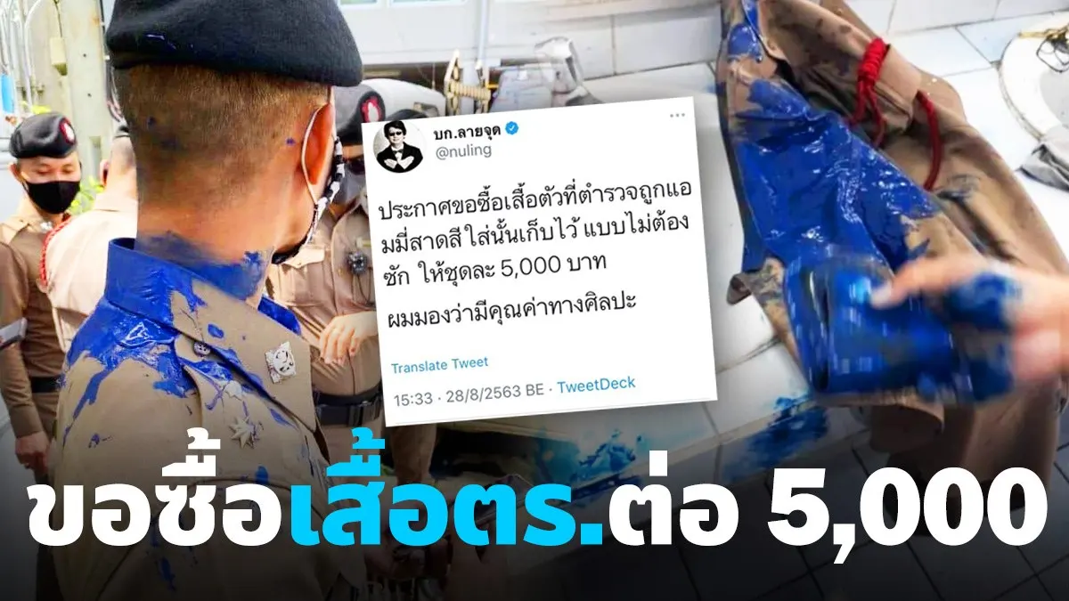 ประกาศขอซื้อเสื้อตัวที่ตำรวจถูกแอมมี่สาดสีใส่นั้นเก็บไว้ แบบไม่ต้องซัก ให้ชุดละ 5,000 บาท