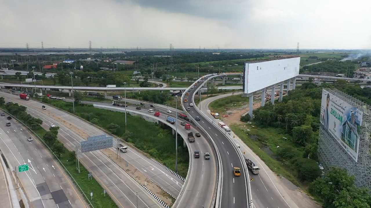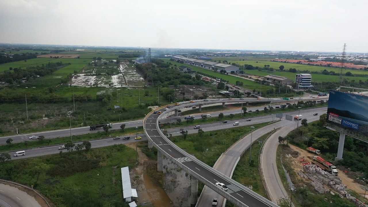 รถที่มาจากทิศทาง มอเตอร์เวย์ หมายเลข 9 ก็ออกมาปกติ พอออกมาทางคู่ขนาน ก็ตัดเข้า ทล.1 ขับชิดซ้ายตรงไปขึ้นสะพาน