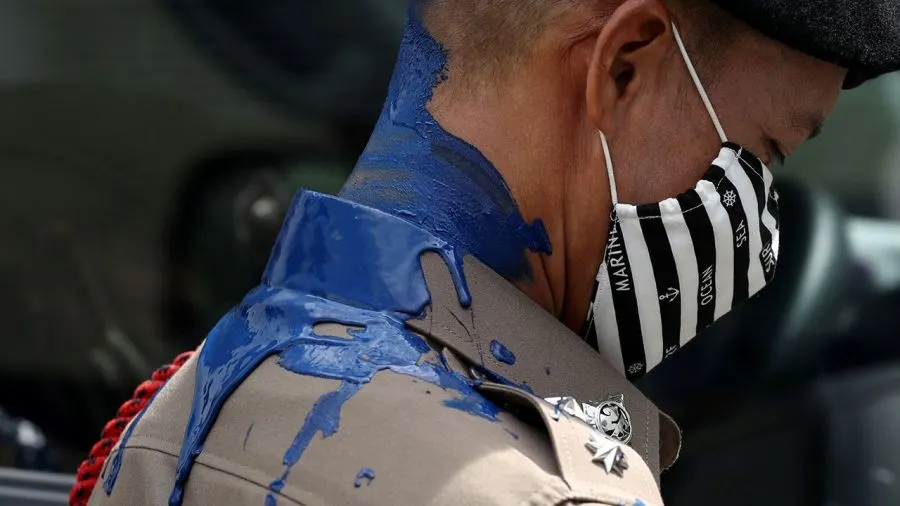 ส่วนทางฝั่งกรณีของไทย ก็มีกรณีการสาดสีของแอมมี่ The bottom blue เช่นกัน กลายเป็นกรณีที่ถูกถกเถียงกันในสังคมเป็นจำนวนมาก ซึ่งเป็นการสะท้อนให้เห็นการทำงานของตำรวจด้วยว่าควรจะอยู่เคียงข้างประชาชน หรือรับใช้รัฐบาลที่ไม่มีความชอบธรรม และประชาชนไม่ต้องการอีกต่อไป