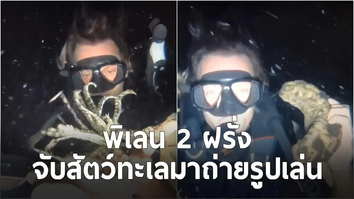 จวกยับ! 2 ฝรั่งนักดำน้ำ จับสัตว์ทะเลมาถ่ายรูปเล่น มีพฤติกรรมที่ไม่เหมาะสม