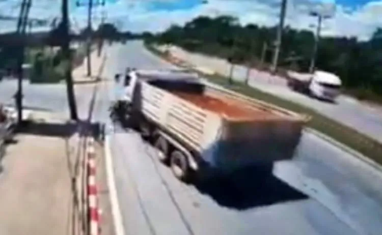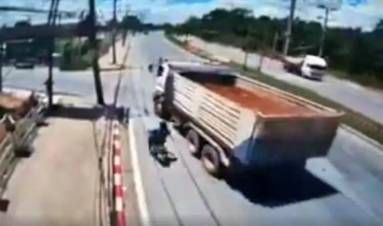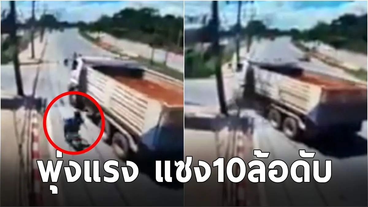 ไปให้สุด!! จรวดทางเรียบ รถจักรยานยนต์พุ่งแรงแซงซ้าย ชนกับ รถบรรทุก 10 ล้อดับคาที่