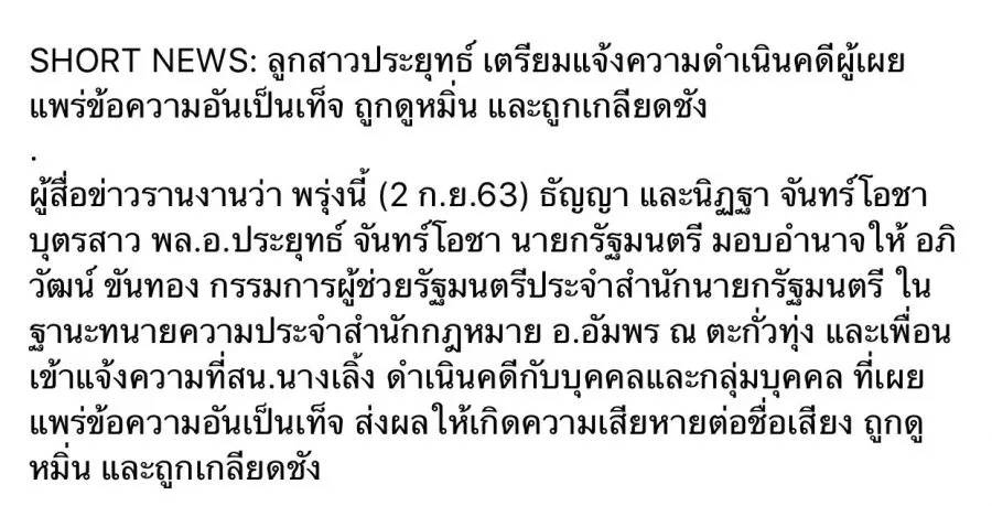 - ลูกสาวประยุทธ์ใช้สิทธ์อะไรมอบอำนาจให้กรรมการผุ้ช่วยประจำสำนักงานรัฐมนตรีในฐานะทนายความยื่นฟ้องคนดูหมิ่น