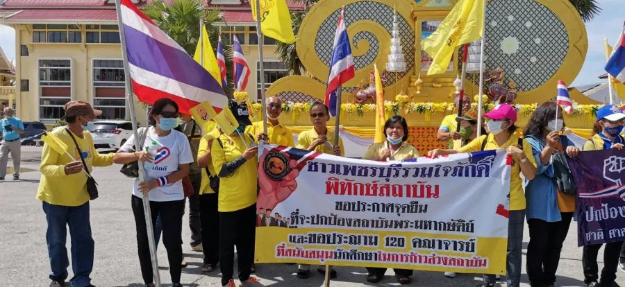 บรรยากาศการออกมารวมพลังปกป้องสถาบันของพี่น้องชาวเพชรบุรี และพื้นที่ใกล้เคียง นำโดยคุณบุญเกื้อ ปุสสเทโว โฆษกไทยภักดี ร่วมแสดงพลังด้วยปกป้องสถาบัน โดยกิจกรรมดังกล่าวได้จัดขึ้น ณ ศาลากลางจังหวัดเพชรบุรี