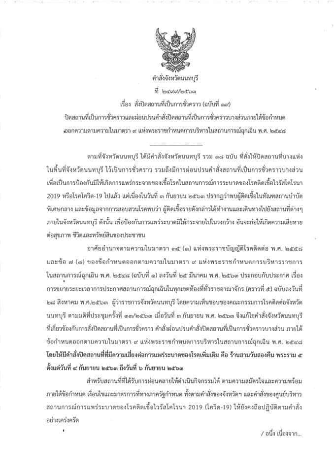 สั่งปิดสถานที่เป็นการชั่วคราว (ฉบับที่ ๑๙)