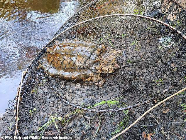 โดยพบว่าตัวผู้หนัก 100 ปอนด์ และตัวเมียหนัก 46 ปอนด์ ในกับดักอวนในแม่น้ำ New River ทางตอนเหนือของ Gainesville พร้อมกับตัวผู้ หนัก 64 ปอนด์อีกตัวที่พบในกับดักใกล้เคียง นักวิจัยคาดว่าทั้งเต่าทั้ง 3 ตัว น่าจะมีอายุตั้งแต่ 40 ถึง 80 ปี อย่างไรก็ตามเมื่อเต่าทั้ง 3 ได้ถ่ายภาพและบันทึกสถิติที่สำคัญแล้ว พวกมันก็ถูกปล่อยกลับคืนสู่แม่น้ำอีกครั้ง