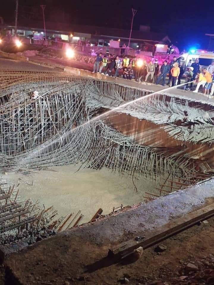 ในที่เกิดเหตุพบหลังคาอุโมงค์ที่รถบรรทุกปูนซีเมนต์ผสมเสร็จ กำลังเทให้คนงานของผู้รับเหมา บริษัท อิตาเลี่ยน ดิเวล๊อปเม้นต์ จำกัด (มหาชน) กว่า 20 คน ที่ผูกเหล็กเตรียมไว้ ช่วยกันเกลี่ยและปาดปูนซีเมนต์ ขนาดมีความกว้าง 12 เมตร ยาว 12 เมตร หนาประมาณ 1 เมตรเศษ ที่มีน้ำหนักมาก