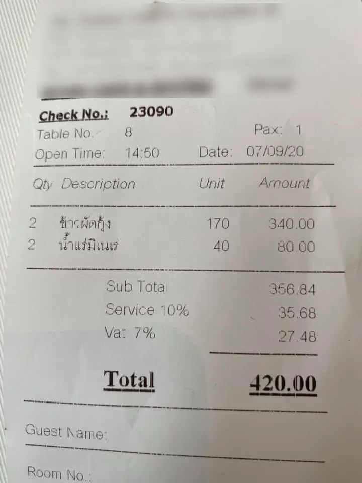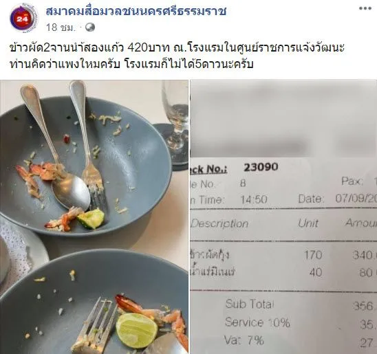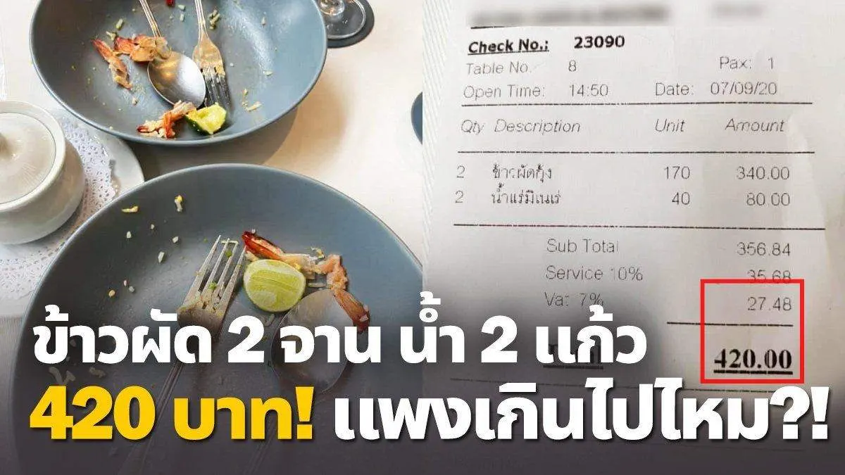สั่งข้าวผัด 2 จาน น้ำสองแก้วโดนคิดเงิน 420 บาท แพงไปไหม