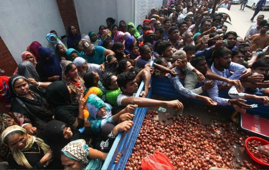 #บังกลาเทศ ภาพที่/ 2 หัวหอมเริ่มขาดแคลน และปรับราคาสูงขึ้นเพราะอินเดียไม่ส่งออก บังกลาเทศตัดสินใจนำเข้าหัวหอมจากประเทศจีนเมียนมาร์ปากีสถานอียิปต์และตุรกี 11,000 ตัน ทำเรื่องนำเข้าตั้งแต่ 3 กันยายน