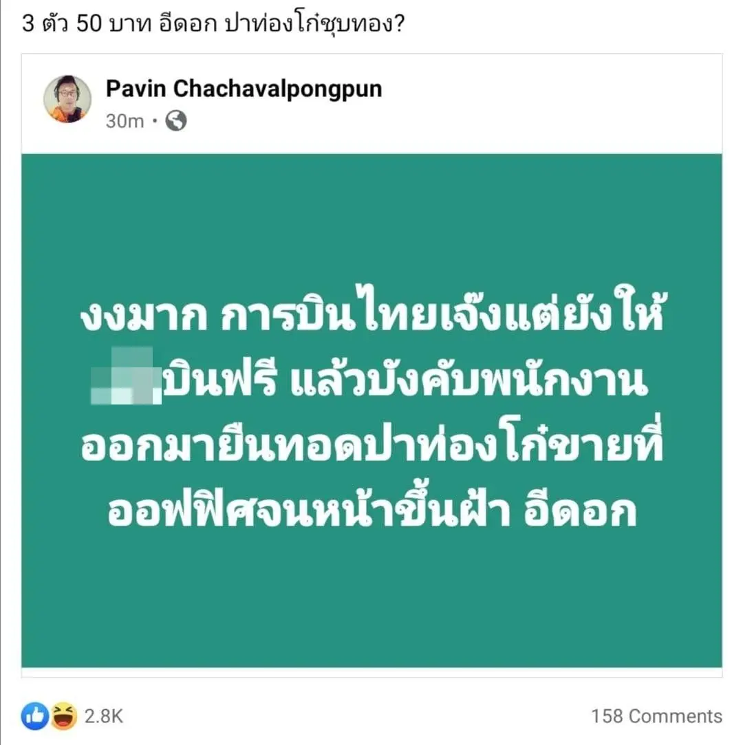 ปวิน ชัชวาลพงศ์พันธ์ งงมาก!!! บินไทยเจ๊งแต่บังคับพนง.ยืนทอดปาท่องโก๋จนหน้าขึ้นฝ้า