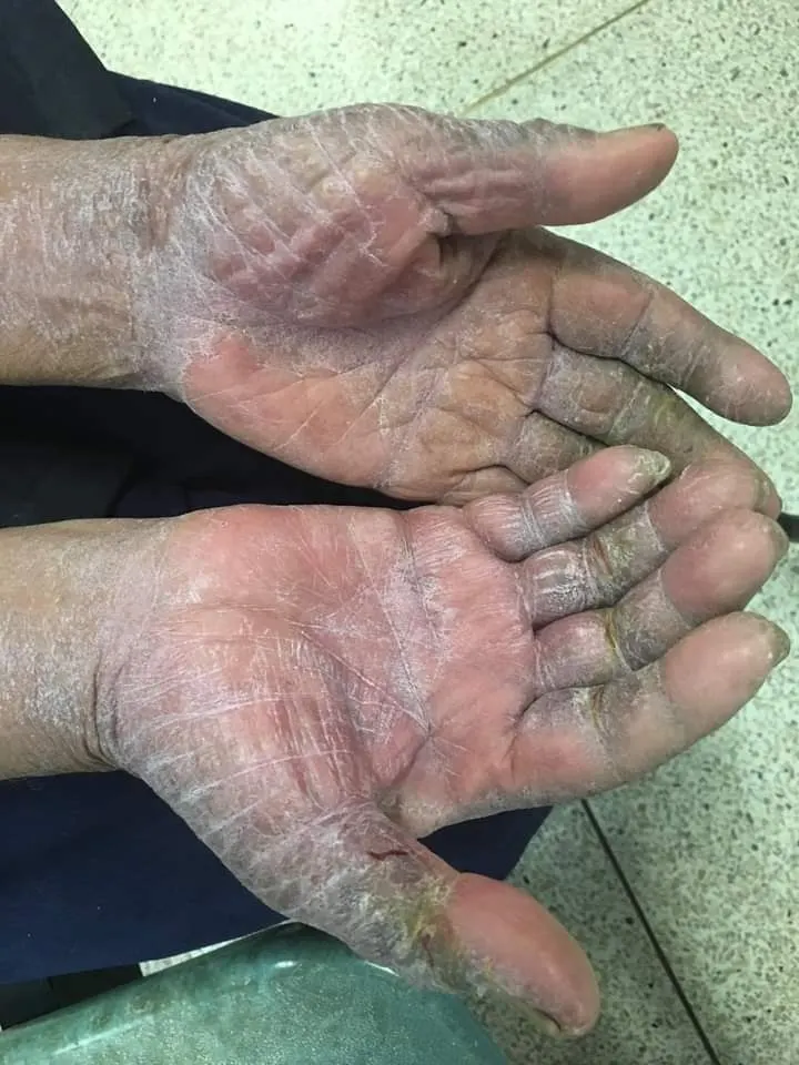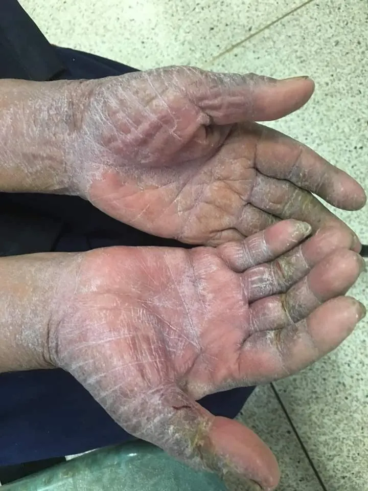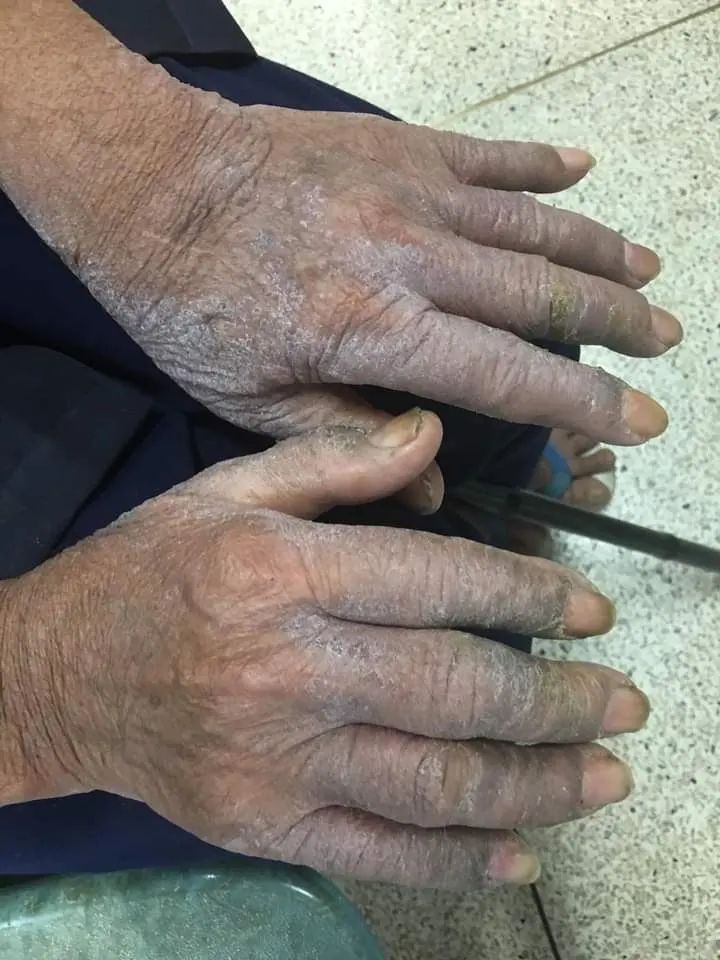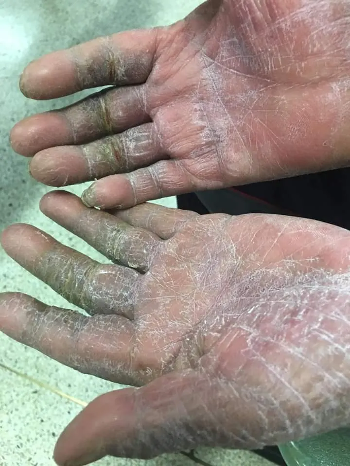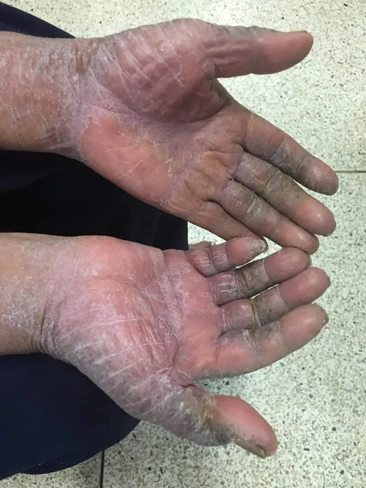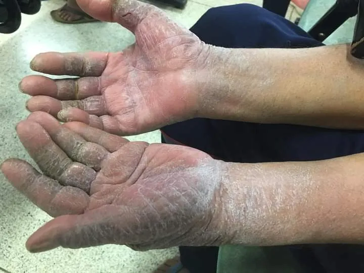 น่ากลัว! ฉีดยาฆ่าหญ้า ไม่สามถุงมือป้องกัน ผลคือมือ-แขนบวมแตก แสบคัน