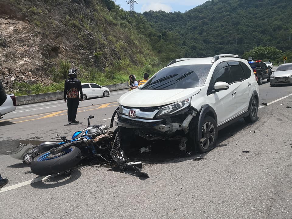 เหตุการณ์ บิ๊กไบค์ ซิ่งแหกโค้ง ชนข้ามเลน