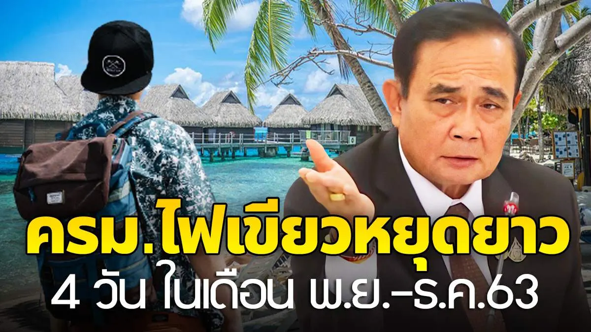 ด่วน! ครม. ไฟเขียวหยุดยาว พ.ย.-ธ.ค เดือนละ 4 วัน หวังกระตุ้นเศรษฐกิจจากการท่องเที่ยว