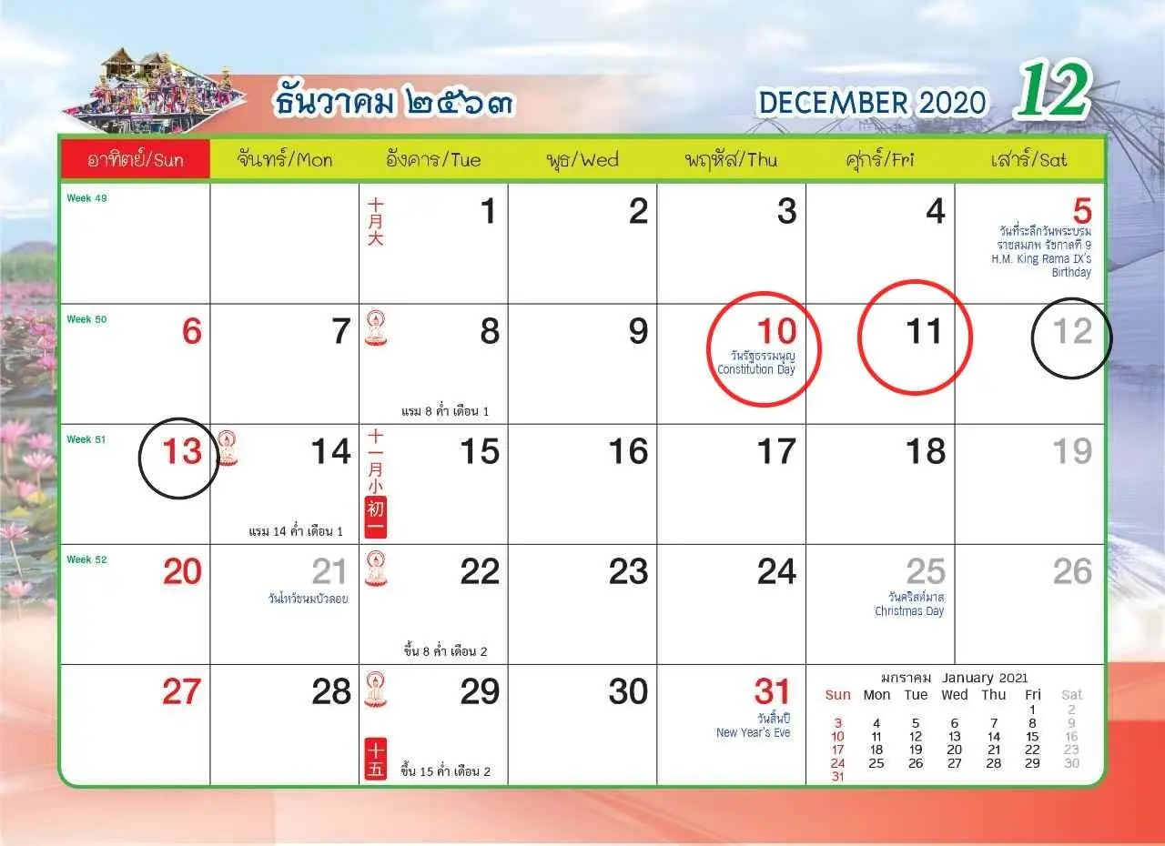 นอกจากนี้ ยังเห็นชอบประกาศให้วันศุกร์ที่ 11 ธ.ค. เป็นวันหยุดเพิ่มเติม จะทำให้มีวันหยุดต่อเนื่อง 4 วัน ตั้งแต่วันที่ 10-13 ธ.ค. เพื่อให้ประชาชนออกมาท่องเที่ยวและออกมาใช้จ่ายเงิน หวังกระตุ้นเศรษฐกิจ