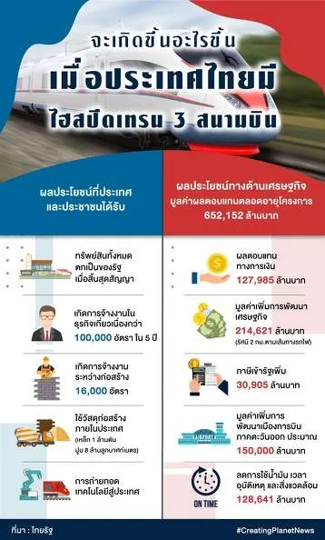 รถไฟความเร็วสูงเชื่อม 3 สนามบิน สร้างงาน ดันเศรษฐกิจไทยเติบโต