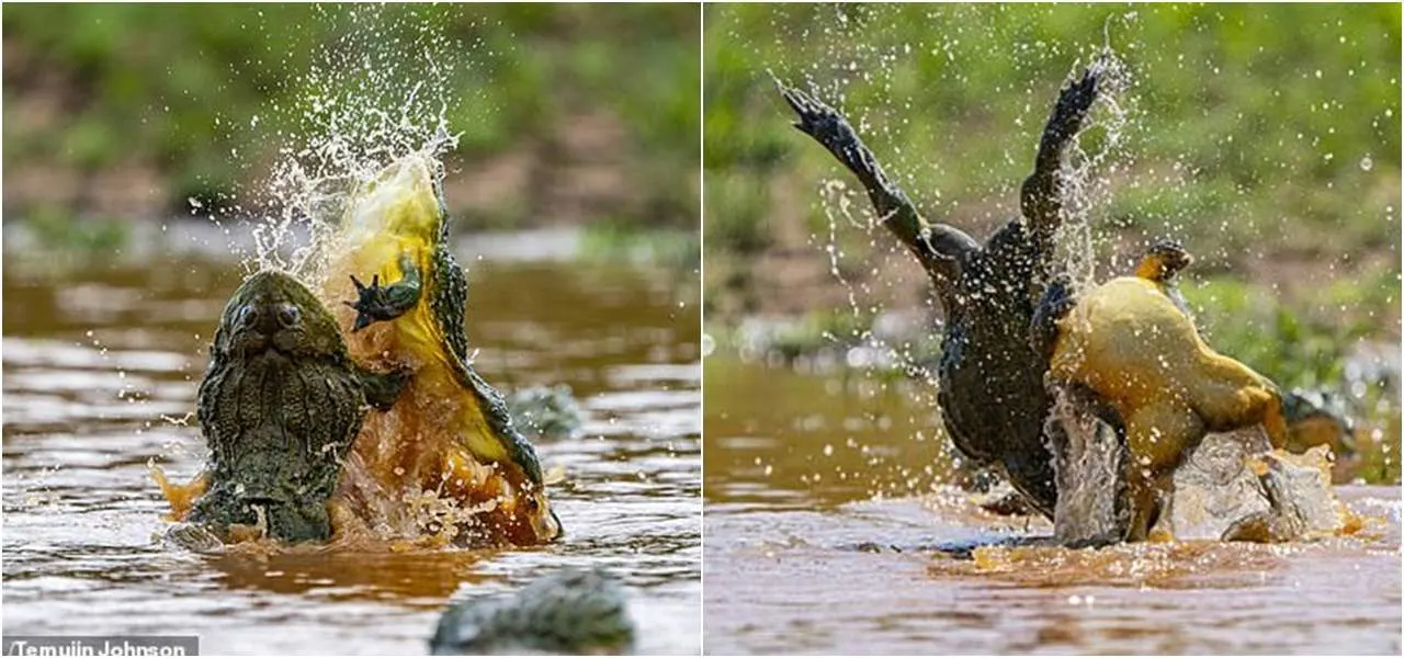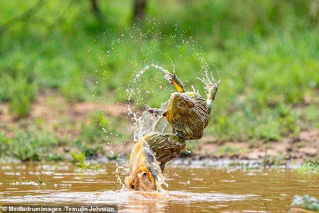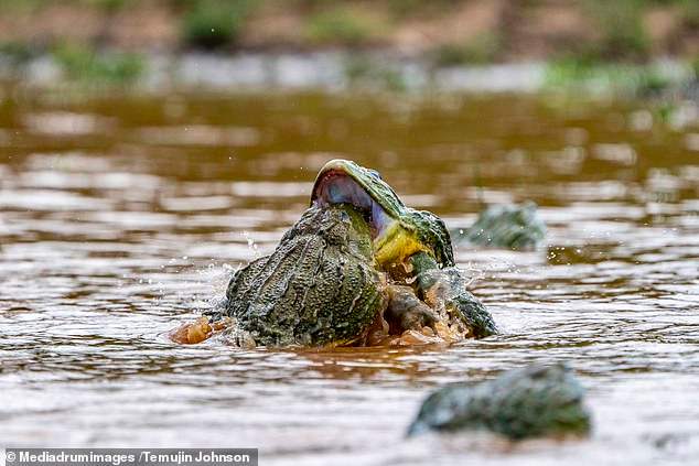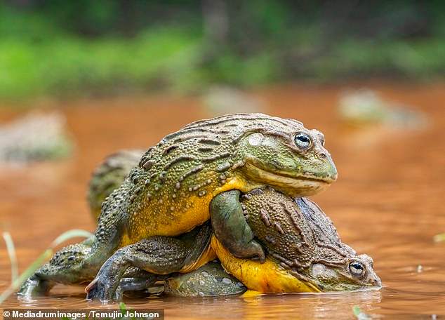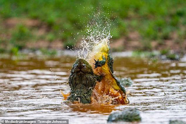 สัญชาตญาณการต่อสู้ของสัตว์เป็นสิ่งที่น่าทึ่ง และชวนให้เฝ้าจับตามองอยู่เสมอ เช่นเดียวกันกับฉากสงครามของกบแอฟริกันบูลฟร็อก (African bullfrogs) ตัวผู้สองตัวที่ถูกถ่ายได้โดย ช่างภาพ Temujin Johnson วัย 25 ปี จากเมืองเคปทาวน์ (Cape Town) ประเทศแอฟริกาใต้