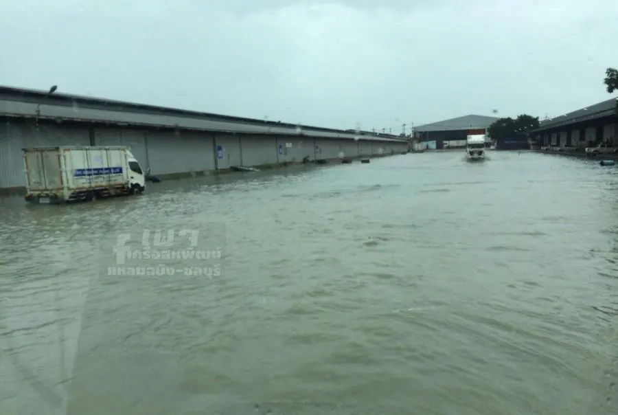 เลิกงานมาเจอแบบนี้คงแทบขาดใจเลย เผยภาพน้ำท่วมโรงงานเครือสหพัฒน์แหลมฉบัง