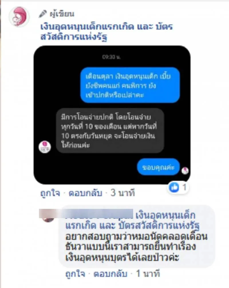 ขอบคุณ เงินอุดหนุนเด็กแรกเกิด และ บัตรสวัสดิการแห่งรัฐ