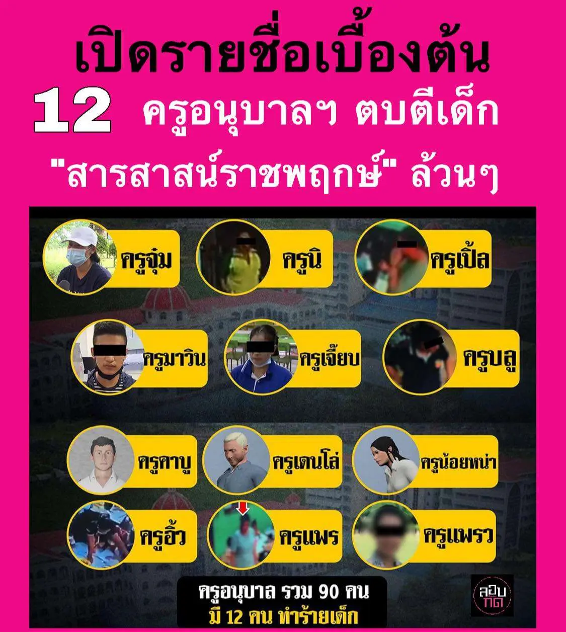ล่าสุดเพจ ลอบกัด โพสต์ไปกันใหญ่แล้วครับ!! หลังจากการตรวจสอบกล้องวงจรปิดของเจ้าหน้าที่ตำรวจ พบว่ามีคุณครูอนุบาลฯ ถึง 12 ราย ได้ลงมือทำร้ายเด็กสารพัดรูปแบบ ซึ่งยังรอการตรวจสอบเพิ่มเติมจากกล้องภายในโรงเรียนสารสาสน์ราชพฤกษ์