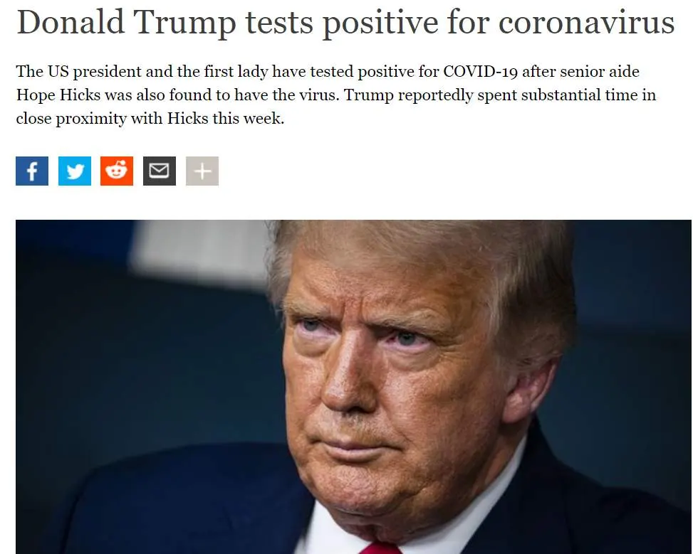 หลังจากที่มีข่าวว่า ประธานาธิบดี โดนัลด์ทรัมป์ และ สตรีหมายเลขหนึ่งได้มีการตรวจเชื้อ โคโรน่าไวรัส