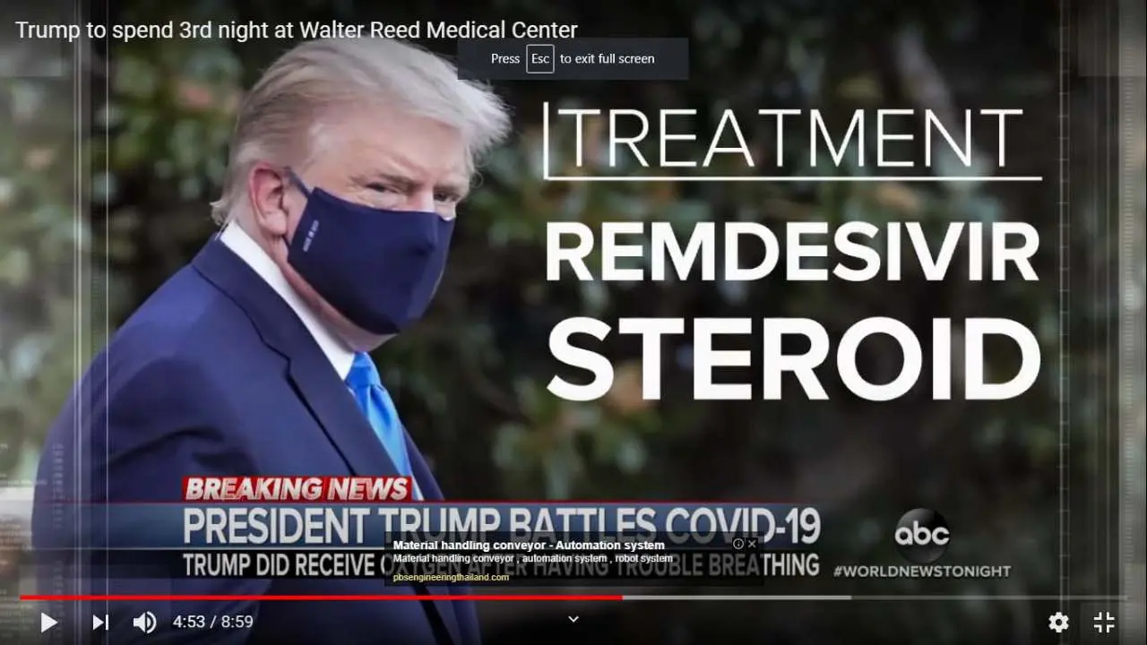 เครื่องช่วยหายใจ ให้ยา เรมด์ซีเวียร์ และ ให้ สเตอร์รอยด์ วันที่3 อาการดีขึ้น ทรัมป์ ได้นั่งรถออกมา