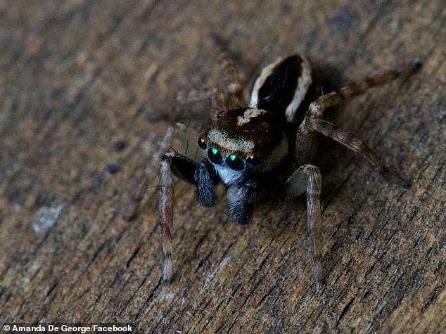 รายงานระบุว่า Amanda ได้ค้นพบแมงมุมลึกลับที่มีความยาวประมาณ 4 มม. และมันไม่เป็นอันตรายต่อมนุษย์ โดยเธอพบว่ามันเดินข้ามถังขยะรีไซเคิลในสวนหลังบ้านของเธอ และเมื่อดูใกล้ๆก็พบว่า มันน่าจะเป็นแมงมุมกระโดดที่มีแปดตา มีใบหน้าสีฟ้าโดดเด่น
