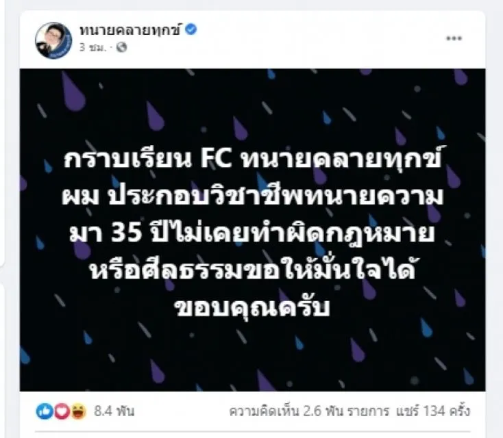 ในขณะที่ต่อมา มีชาวเน็ตแห่ไปคอมเมนต์ถาม ทนายเดชา กิตติวิทยานันท์ ในแฟนเพจทนายคลายทุกข์ถึงเรื่องที่ ตัดสินใจ รับเป็นทนายให้กับ เครือสารสาสน์ จนทนายเดชา ต้องโพสต์ชี้แจง ระบุว่า”กราบเรียน FC ทนายคลายทุกข์ ผม ประกอบวิชาชีพทนายความมา 35 ปี ไม่เคยทำผิดกฏหมาย หรือ ศีลธรรมขอให้มั่นใจได้ ขอบคุณครับ”