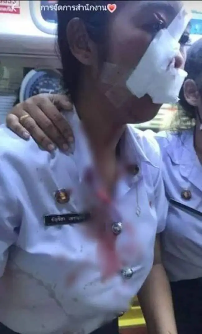 เจ้าหน้าที่มูลนิธิประชาร่วมใจ นำตัว นางสาวแป้ง (นามสมมุติ) อายุ 19 ปี นักศึกษา ชั้นประกาศนียบัตรวิชาชีพชั้นสูง (ปวส.1) แผนกบัญชี วิทยาลัยแห่งหนึ่ง จังหวัดนครศรีธรรมราช ส่ง รพ.มหาราช นครศรีธรรมราช เนื่องจากได้รับบาดเจ็บ จากการถูกทำร้ายร่างกายด้วยอาวุธมีด ซึ่งถูกกรีดเข้าที่ใบหน้า ตั้งแต่บริเวณเปลือกตาจนถึงแก้ม เป็นแผลลึก ยาว