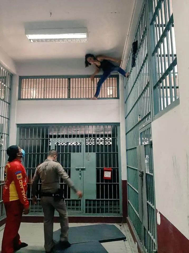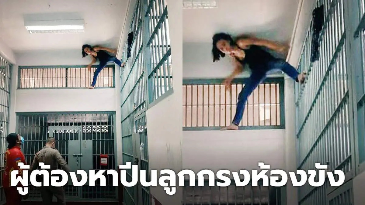 สาวชุดดำ! อายุ 37 ปี เครียดสุดขีด หลังถูกจับคดีอาวุธปืน ปีนลูกกรงห้องขัง สน.สุทธิสาร หลบหนีเจ้าหน้าที่