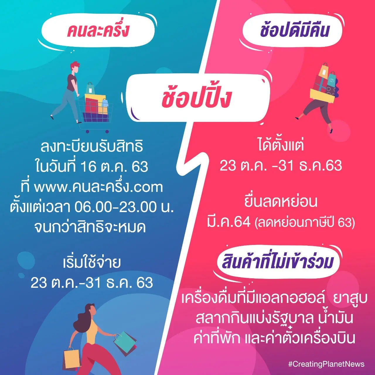 คลอดแล้วจ้า !!! มาตรการกระตุ้นเศรษฐกิจของรัฐบาลกับมาตรการ "คนละครึ่ง" และ "ช้อปดีมีคืน" ที่กระตุ้นให้คนนำเงินออกมาจับจ่ายใช้สอย เพื่อให้เกิดการหมุนเวียนในระบบ